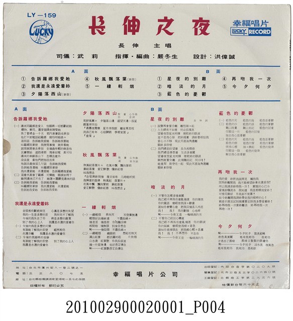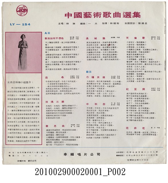 2010.029.0002.0001 幸福唱片公司發行編號「LY-154」華語歌曲專輯《中國藝術歌曲選集》唱片封套