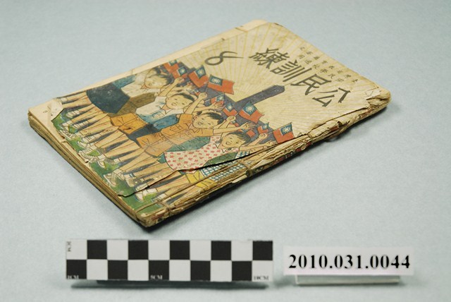 本文物為臺灣省教育廳依教育部於民國41年(1952年)所修訂的「國民公民訓練標準」分為七單元共六學年十二冊、每冊各二十課供國民學校教學用,七大單元含括「公民訓練」、「健康教育」、「生活教育」、「安全教育」、「時事教育」、「營養教育」、「民族精神教育」等;其封面為手持國旗立於總統府前歡欣鼓舞的小學生,課文之外,尚有自我檢核常規是否有執行達成自評表,本書為第八冊上編為中年級讀本,僅有少數文字需注音,全篇為課文教授未見習題;封底除著作編輯說明外,另有手寫「台大中國文學系系主任毛子水」。