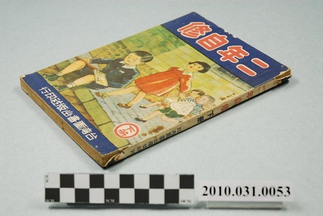 本文物為自修課本,自修課本為各科合輯,本冊為二年級自修課本,除國語科外,另有算術科及常識科;國語科第一課為當時代特有的偉人教育:「勤勞的蔣總統」並附有蔣總統及其母親照片。