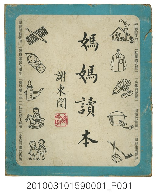 本文物為臺灣省政府《媽媽讀本》紙盒,該盒上方有「媽媽讀本」的字樣,旁邊有省長謝東閔的題字及蓋章,並畫有各冊《媽媽讀本》的主題及其代表圖樣,包含:「舒適的住宅」、「整潔的衣服」、「食物與營養」、「用電的常識」、「家庭生活管理」、「家庭財務管理」、「等待嬰兒的誕生」、「嬰兒第一年」、「扶育孩子成長」、「家庭計劃的實施」等。養育小孩被認為是傳統社會中母親的重要工作,然這樣的工作受到日治時期科學化及健康觀念的影響,認為須以國家之力介入家庭管理新生兒的健康,至此之後,國家開始教導女性如何當一個好媽媽,並且出現生養兒女的範本,將女性置入一種「理想母親」的社會框架中,使其在兩者之間掙扎。