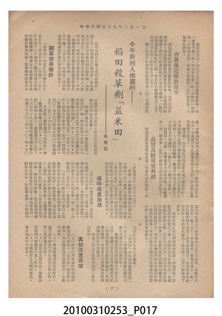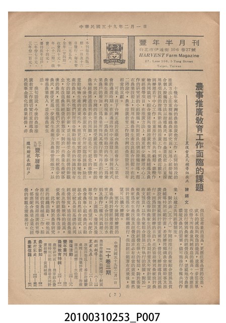 2010.031.0253 豐年社《豐年》第20卷第3期
