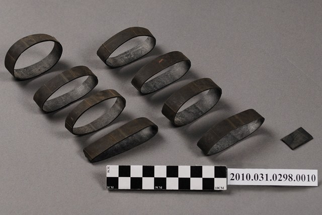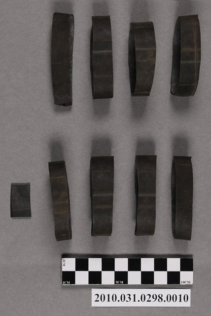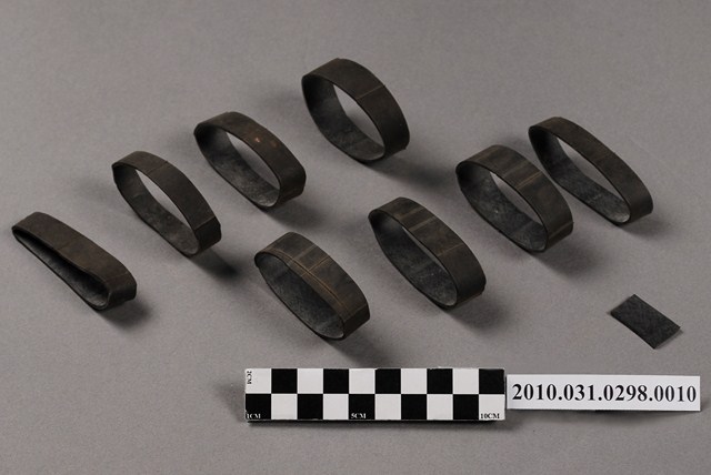 1.本物件為八個黑色橡膠圈及一塊黑色小橡膠塊,是用來固定屐耳(鞋帶)的配件。