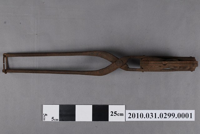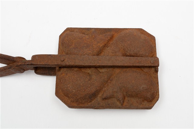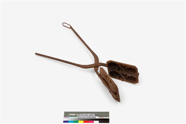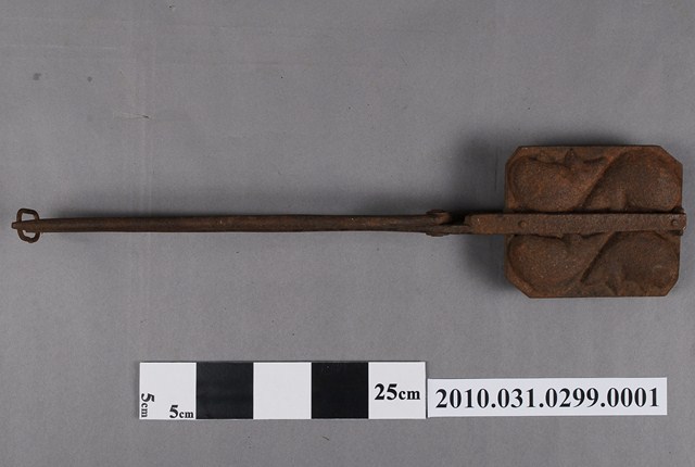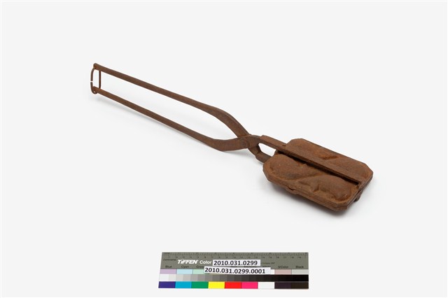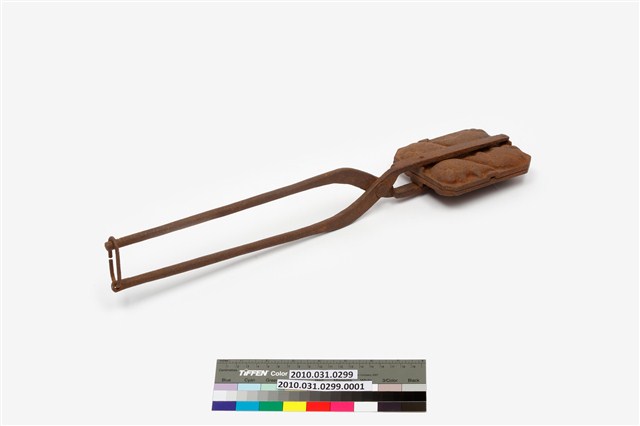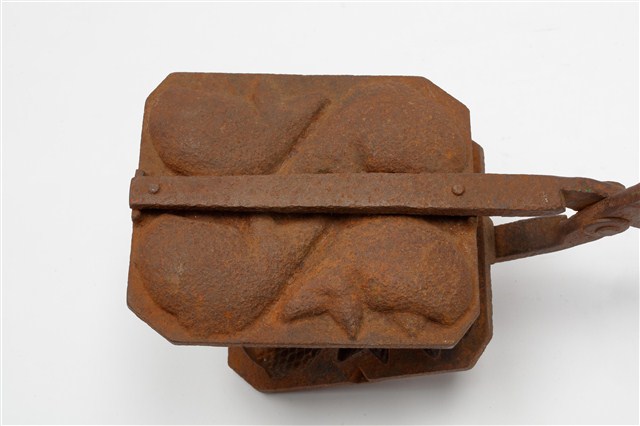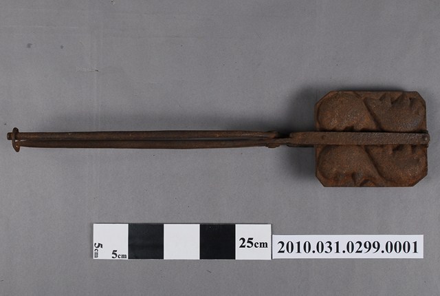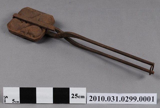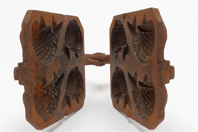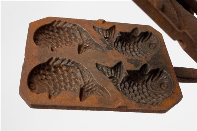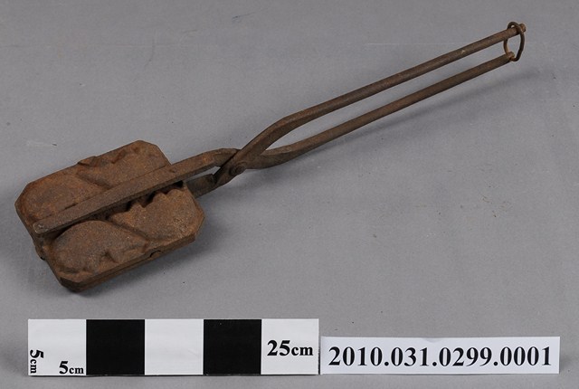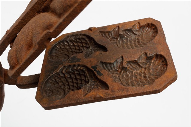 2010.031.0299.0001 鐵製火鉗夾式四枚鯛魚造型雞蛋糕模具
