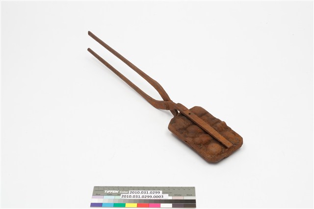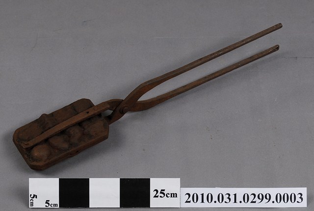 2010.031.0299.0003 鐵製火鉗夾式八樣造型烤雞蛋糕模具