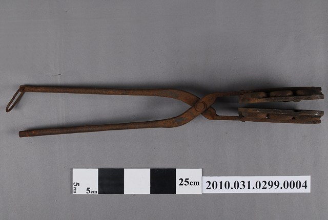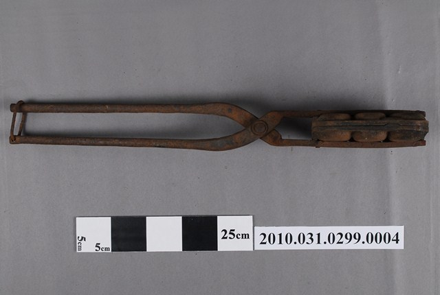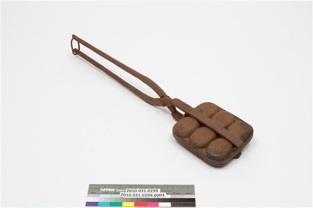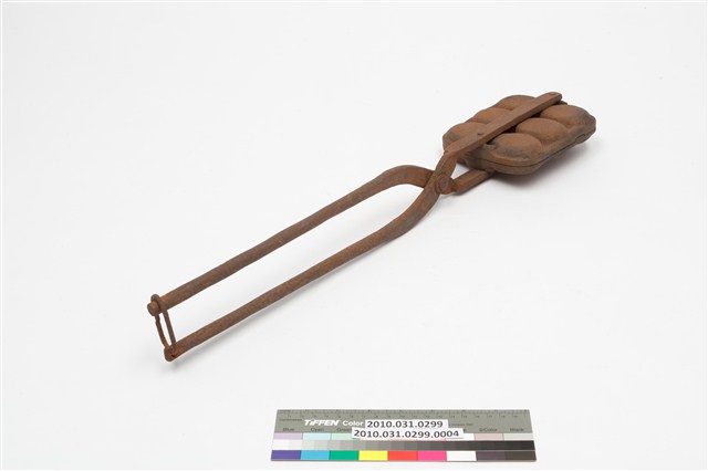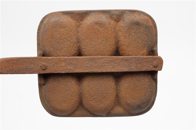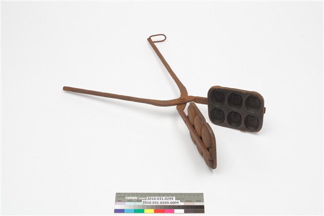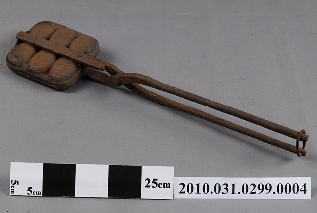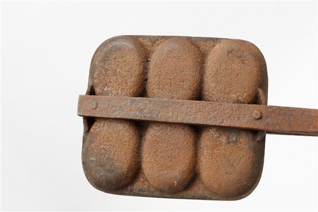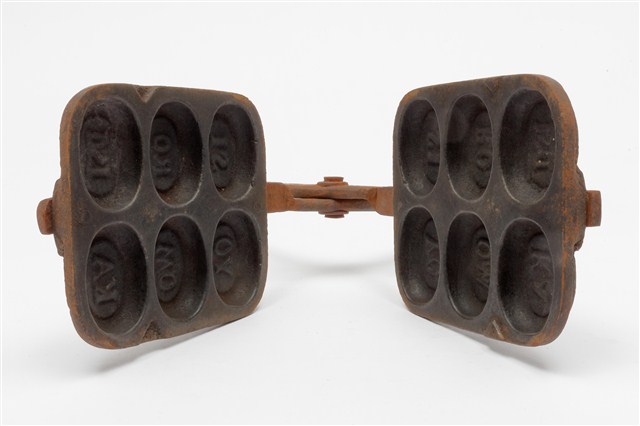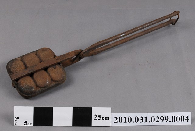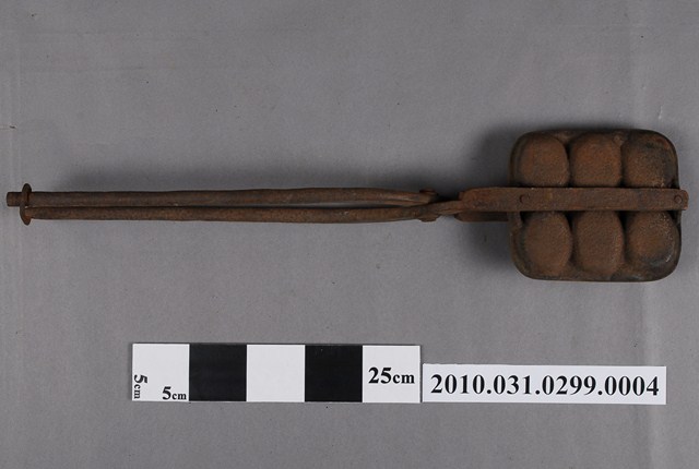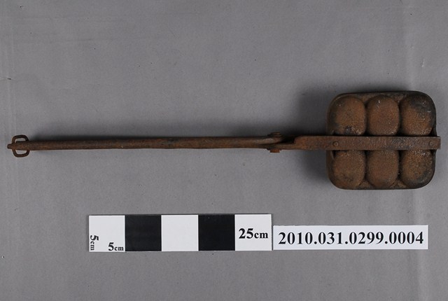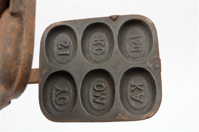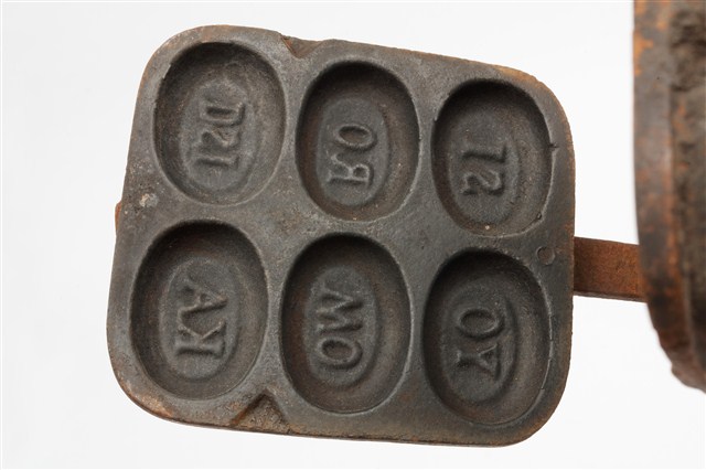 2010.031.0299.0004 鐵製火鉗夾式六枚橢圓英文字烤雞蛋糕模具