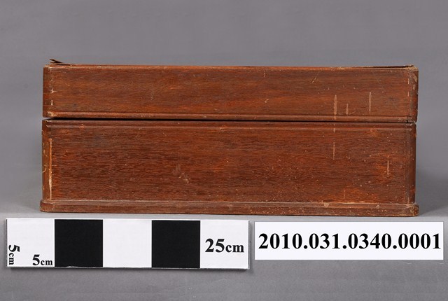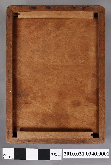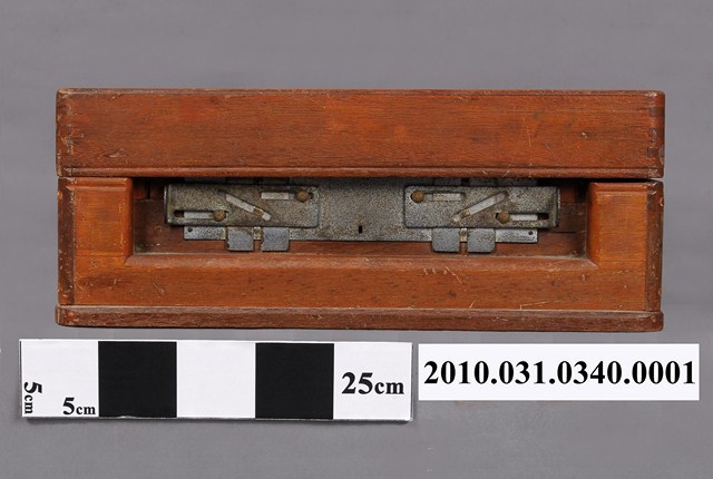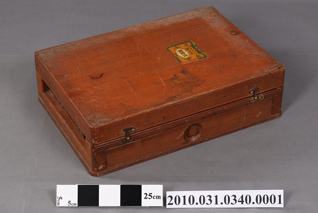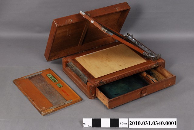 1. 本文物為利百代謄寫版主體。謄寫版主體為木製品,謄寫版裝在木盒裡,掀開盒蓋即可見謄寫版,盒蓋上有利百代標籤。木盒內有一抽屜,拉開後可放置謄寫工具,例如滾輪刷等。木盒外觀為木頭原色,呈長方形。製造以利百代為名的產品公司創設於二次大戰之後,故以上物品應是西元1945年之後的產品。2. 利百代國際實業股份有限公司創辦人為王松振,他自西元1948年自大陸渡臺,獨資創設利華貿易行,以 LIBERTY為名,從事進口貿易及引進日本文具品牌銷售。西元1954年成立百代實業股份有限公司,並設立以利百代為品牌的第一座綜