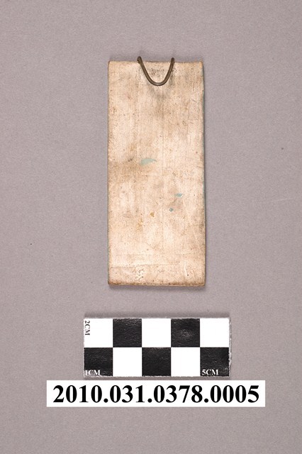 1.本物件為打倒共匪彈珠臺2身木牌,反面有鐵鉤,正面為白底藍邊紅字。木牌保存良好,顏色無褪色情況。2.彈珠臺又稱為「珠仔臺」,興盛於臺灣五六零年代,有兩種動力方式,一種為彈簧動力,另一種為木頭製撥片,係賭博性質的娛樂器材,至今仍未被淘汰。彈珠臺大部分使用於夜市,從最早一元一次,隨著通貨膨脹到現在的十元一次。3.中華民國與中國的聯合國代表權之爭纏綿多年,雙方皆堅持「一個中國」原則,不願接受雙重代表案的提議,最終於1971年10月25日聯合國大會第2758號決議案通過後,中華民國就此退出聯合國至今。
