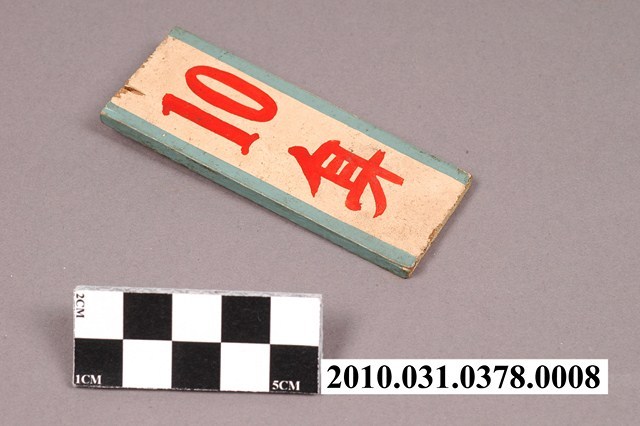 1.本物件為打倒共匪彈珠臺10身木牌,反面有鐵鉤,正面為白底藍邊紅字。木牌保存良好,顏色無褪色情況。2.彈珠臺又稱為「珠仔臺」,興盛於臺灣五六零年代,有兩種動力方式,一種為彈簧動力,另一種為木頭製撥片,係賭博性質的娛樂器材,至今仍未被淘汰。彈珠臺大部分使用於夜市,從最早一元一次,隨著通貨膨脹到現在的十元一次。3.中華民國與中國的聯合國代表權之爭纏綿多年,雙方皆堅持「一個中國」原則,不願接受雙重代表案的提議,最終於1971年10月25日聯合國大會第2758號決議案通過後,中華民國就此退出聯合國至今。