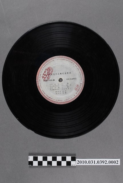 本件封面、封底保存狀態良好,彩色印刷,大王唱片發行。 黑膠唱片保存狀態普通,字體模糊,為紅黑雙色印刷,《大王唱片最新兒童歌集》唱片,含AB面共16首歌曲歌名。
