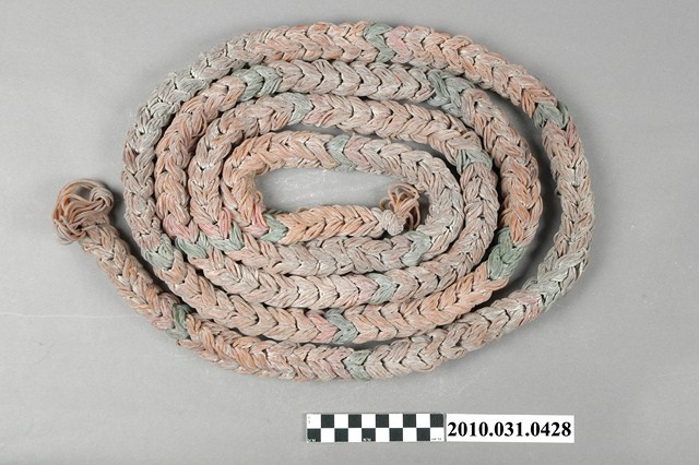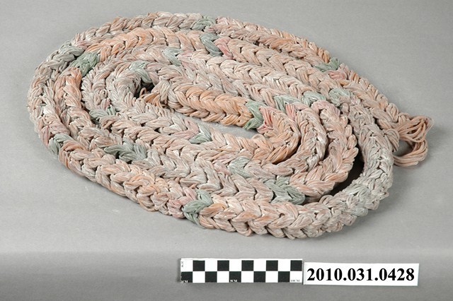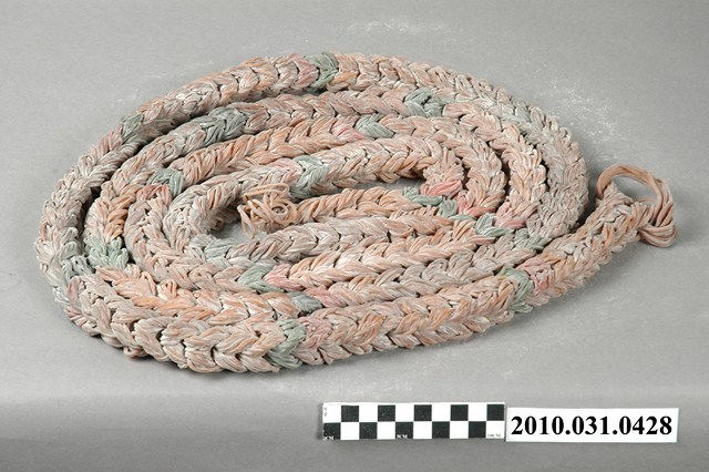 1.本物件為橡皮筋跳繩,由數條紅色、綠色橡皮筋串聯而成。