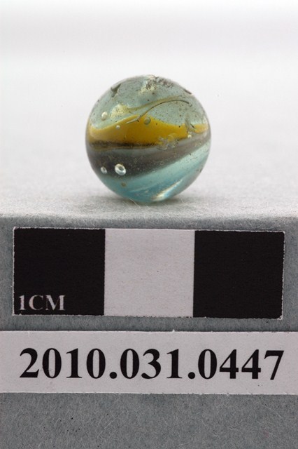2.彈珠,由來已久,古時即有用龍眼籽、瑪瑙、石頭等圓形小球體來進行遊戲,近代才有玻璃彈珠的出現,日治時期彈珠、彈片即為受孩童歡迎的童玩,而日本發明的彈珠汽水也是紅極一時的飲料,以彈珠堵住汽水瓶口,將氣泡留於瓶身中。現今玻璃彈珠有不同的色澤與尺寸,透明而內部有不同顏色之花彩玻璃彈珠、反射湛藍金屬光澤的藍晶玻璃彈珠等,皆是孩童寶貴的收藏對象。