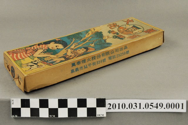 1.本件是火花銀雀包裝紙盒,長方體包裝盒,正面彩色印刷,有國王圖像和兒童點燃煙火玩樂的景象,並有「火花銀雀」、「王牌」字樣。紙盒側面有「萬泰煙火股份有限公司出品」、「嘉義市延平街359號」、「電話25259號」字樣。2.煙火是將紙製或泥製的外殼裝填,可以產生煙火的化學藥劑和火藥,點燃後噴射火焰與火花,幻化出各種景象。