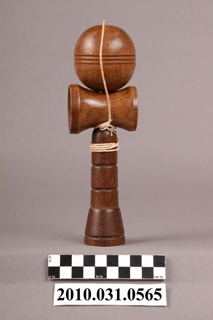 1.本物件為木製日月球,材質為木頭,顏色為棕色,日月球包含上方的圓形木球、中間的皿身、下方之劍身與握柄。