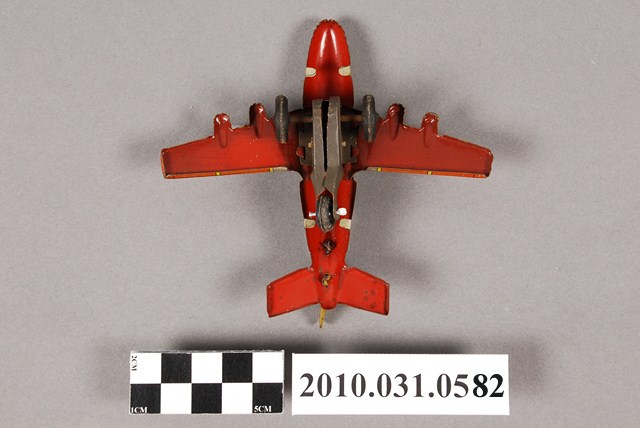 2.本物件屬鐵皮發條玩具,約於19世紀末,鐵皮玩具開始以機器生產,且將彩色花紋轉印在鐵皮上,故能呈現繽紛樣貌。