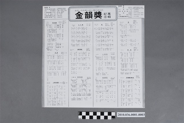 2010.036.0001.0003 新力股份有限公司發行新格牌唱片編號「VH-004」華語歌曲專輯《金韻獎紀念專輯》歌詞單