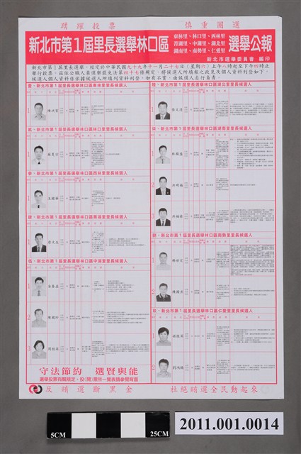 2011.001.0014 新北市選舉委員會編印《新北市第1屆里長選舉林口區東林里、林口里、西林里、菁湖里、中湖里、湖北里、湖南里、南勢里、仁愛里選舉公報》