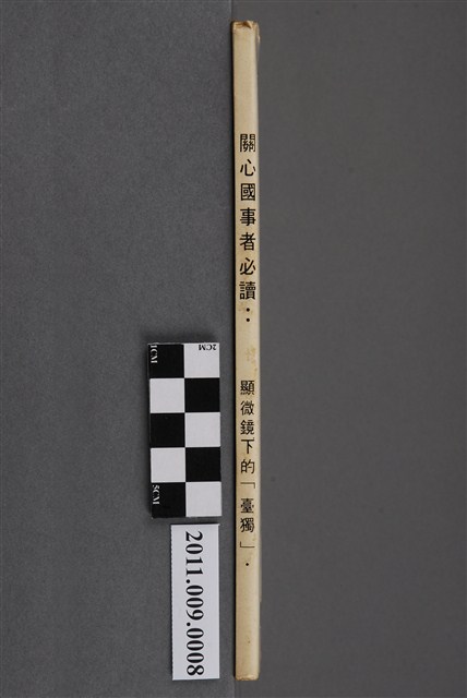 此件文物為書籍,題名為《顯微鏡下的「臺獨」》,作者為林志雄,封面在書名之外另印有一行大字「關心國事者必讀」。 《顯微鏡下的「臺獨」》發行於1979年,版本眾多,至少有由世界日報及阿爾泰出版社發行者,也有由臺灣軍管局區司令部印發,作為「後備軍人讀物」。在戒嚴時期,中華民國政府將「臺獨」與「共匪」、「黨外人士」統稱為「三合一敵人」,認定其抱有煽動臺灣社會內亂,使臺灣脫離中華民國之主權管轄的企圖。 在臺灣社會,關於「臺灣獨立」最早的具體事件為1947年發生的「815臺獨案」。在日本戰敗的背景下,一批臺灣仕紳與日本軍官共同研擬了「臺灣自治」方案,但遭總督安藤利吉反對,而後不了了之(陳儀深,2010。140-141)。二二八事件後,廖文毅、史明、王育德、黃昭堂等人在國外展開臺獨運動,並在多國建立臺獨組織。1960至1970年代,臺灣社會發生若干臺獨事件,其中彭明敏師生於1964年所發起的〈臺灣自救運動宣言〉最具代表性(陳儀深,2010。149-152)。解嚴前後,在蔡有全、許曹德、鄭南榕等人士的推動下,「臺獨」在臺灣社會逐漸受人接受。