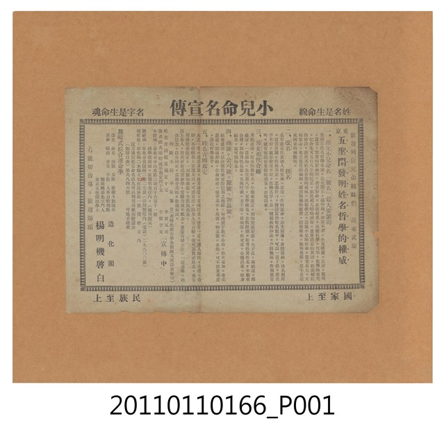 2011.011.0166 楊明機小兒命名宣傳廣告