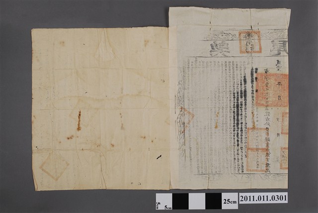 本組為乾隆34年(1769)8月,鄭世百給張丁之立賣盡根杜絕契字與契尾。在契字中載明,鄭世百由於缺錢使用,因此決意將自己從謝家買入,坐落水仔尾陳本廳厝後(位於今臺南市北區五福里)之小厝壹間併壙地壹所,在中人並代書許九的仲介以及陳怡叔的見證下,以佛銀100大圓賣與張丁。咸豐8年(1858)10月,臺灣縣正堂給其編號布字1754號之契尾,並註明此次買賣地點位於西勢庄洋,價銀66兩,納稅銀1兩9錢5分。(契頭全文如下)立賣盡根杜絕契字鄭世百,有明買過謝家小厝壹間,併壙地壹所。坐落水仔尾陳本廳厝後,東至陳梅使壁腳,西至街路,南至陳怡叔厝腳,北至謝統叔厝腳,四至明白為界。今因乏銀費用,先問房親人等不承受,外托中引就賣與張丁官。三面言議,著下時價佛銀壹佰大員,其銀即日仝中收訖,其厝隨即踏界搬空,交銀主掌管居住,聽其翻覄起盖,不敢異言阻擋,一賣千休,日後子孫不敢言找言贖。果係百自己建置之業,與房親人等無干,亦無重張典掛他人及交加不明等情為碍。如有等情,百自出頭抵當,不干銀主之事。此係二比甘愿,各無反悔,口恐無憑,合立賣盡根杜絕契字壹紙,並上手契壹紙,合共貳紙送執,為炤。 即日仝中收訖契面佛銀壹佰大員完足,再炤。 知見人陳怡叔 乾隆參拾肆年捌月日立賣盡根杜絕契字人鄭世百 中人並代書人許九(契尾全文如下)契尾布字壹千柒百伍拾肆號 福建等處承宣布政使司,為遵旨議奏事。 乾隆十五年正月二十四日,奉准戶部咨河南司案呈,所有本部議覆河南布政使富明條奏,買賣田產,將契尾粘連、用印、存貯,申送府州、籓司查驗等因一摺,于本年十二月十二日奏,本日奉旨依議。欽此。相應抄錄原奏,并頒發格式,行文福建巡撫欽遵辦理可也。計粘單一紙、格式一張。內開:該臣等查得該布政使富明奏稱,部議奏頒契尾以後,巧取病民,緣業戶契尾例不與照根同申上司查驗,不肖有司其與給民契尾,則按數登填,而于存官照根,或將價銀刪改。請嗣後州縣于業戶納稅時,將契尾粘連、用印、存貯,每遇十號,申送知府、直隸州查對,如姓名、銀數相符,即將應給業戶之契尾并州縣備案之照根,于騎縫處截發,分別給存。其應申藩司照根,于季報時,府州彙送。至知府、直隸州經收稅契,照州縣申送府州之例,逕送藩司等語。查雜稅與正賦均由州縣造報,該管府州核轉,完納正賦,填寫三聯串票,從未議將花戶收執串票與申繳上司底串,并送府州查驗,誠以花戶照票一繳府州,則給領無時,弊端易生。今稅契、雜項、契尾與照根并送查發,是雜項更嚴于正賦,殊與政體未協。況契尾一項,經一衙門,即多一衙門之停擱,由一吏胥,即多一吏胥之索求,甚且夤緣為奸,藉勒檢查,以致業戶經年累月求一執照寧家而不可得,勢必多方打點,需索之費數倍于前,將來視投稅為畏途,觀望延挨,寧匿白契而不辭,于國課轉無裨益,應將該布政使奏請州縣經收稅銀,將契尾粘連存貯十號,申送府州查發,并知府、直隸州照州縣例逕送藩司之處,均毋庸議。至于貪吏以大報小,奸民爭執訐訟,寔緣法久弊生,不可不量為變通。臣等酌議,請嗣後布政司頒發給民契尾格式編列號及前半幅,照常細書業戶等姓名、買賣田房數目、價銀、稅銀若干。後半幅于空白處預鈐司印,以備投稅時,將契價、稅銀數目大字填寫鈐印之處,合業戶看明,當面騎字截開,前幅給業戶收執,後幅同季冊彙送布政司查核。此係一行筆跡,平分為二,大小數目委難改換,其從前州縣、布政司備查各契尾應行停止,以省繁文。庶契尾無停擱之虞,而契價無參差之弊,于民無累、于稅無虧,侵蝕可杜,而爭訟可息矣。如蒙俞允,俟命下之日,臣部頒發格式,通行直省督撫一體欽遵辦理可也等因,咨院行司。奉此。 計開業戶張丁,買得鄭世百小厝壹間,坐落鎮北保,用價銀陸拾陸兩,納稅銀壹兩玖錢捌分。 布字壹千柒百伍拾肆號,右給臺灣縣業戶張丁,准此。 咸豐捌年拾月日