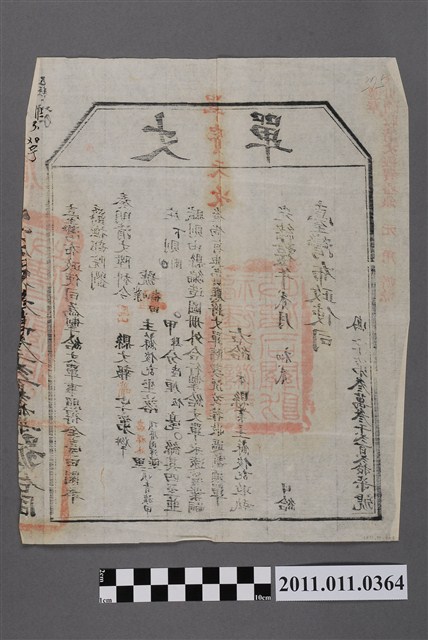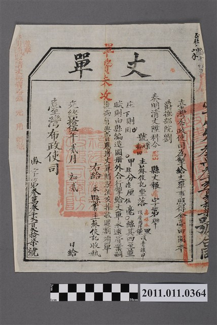 2011.011.0364 光緒15年臺灣布政使司給鳳山縣蘇俊記丈單