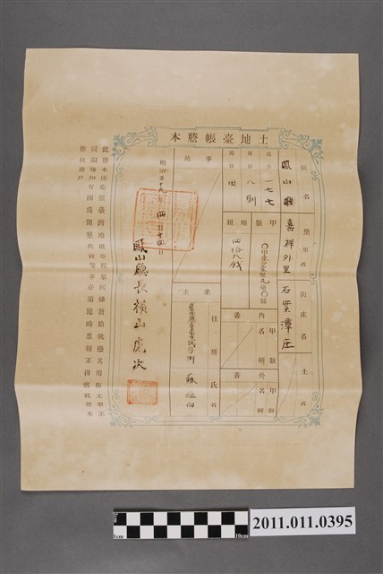 2011.011.0395 明治39年蘇俊記蘇蘊白土地臺帳謄本