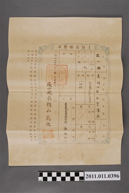 2011.011.0396 明治39年蘇俊記蘇蘊白土地臺帳謄本