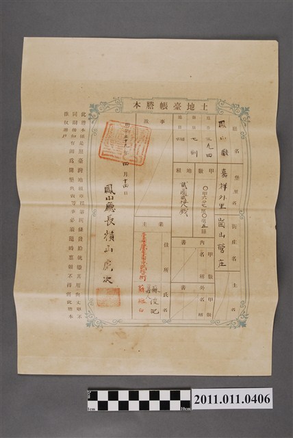 2011.011.0406 明治39年蘇俊記蘇蘊白土地臺帳謄本