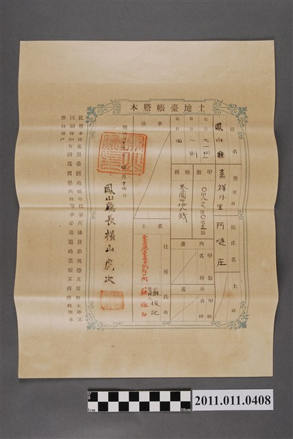2011.011.0408 明治39年蘇蘊白土地臺帳謄本