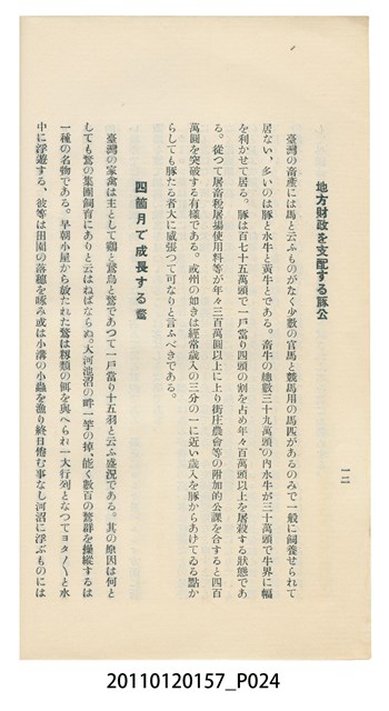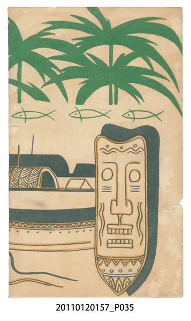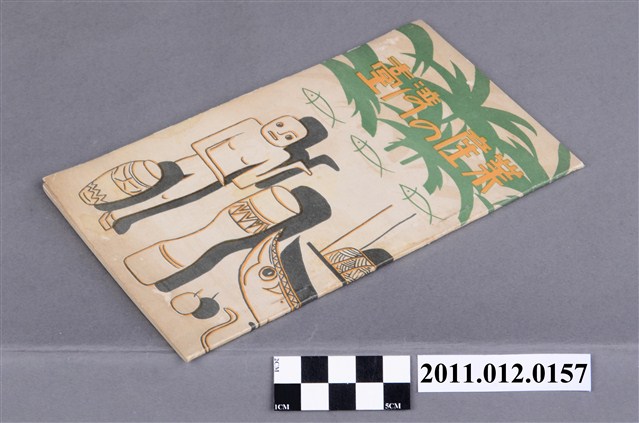 1.本物件為「林肇著《臺灣的產業》」,為林肇著作、殖民時代社臺灣支社發行的書。封面上方為題名「臺湾の產業」,背景圖案為椰子樹、魚,以及具有原住民意象的人物、木杵、拼板舟、盾牌等圖案。內容則主要概述了臺灣的產業概況,如蓬萊米、甘蔗、水果等等的農產情況。