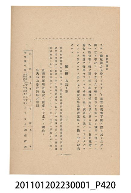 臺湾鉄道史.上,國立國會圖書館,http://dl.ndl.go.jp/info:ndljp/pid/805263(瀏覽日期:2018/11/25)。