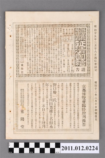 本件為東京東陽堂所發行的《風俗畫報臨時增刊征清圖繪》第九編,由東京東洋堂發行,以宣揚日本戰爭勝利的成果。