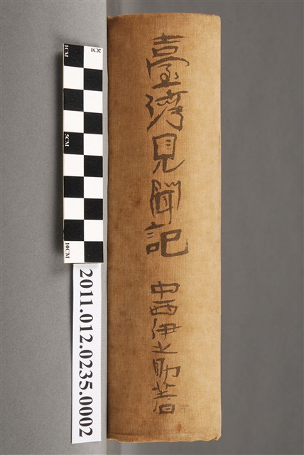 此為一紙質書籍,為1937年由中西伊之助撰寫的《臺灣見聞紀》,此書由東京實踐社於1937年出版,並於1942年由三省堂於臺灣再版。 《臺灣見聞記》是中西伊之助於1937年5至10月在臺灣行旅見聞之記錄,內容包括紀行、評論、感想、短歌、史傳等五大類。中西伊之助是當時頗具知名度的左翼文藝工作者,長期參與文藝與政治方面的組織工作並曾旅居朝鮮擔任記者。「實踐社」即中西伊之助在自主實踐的理念下所創立的出版單位。