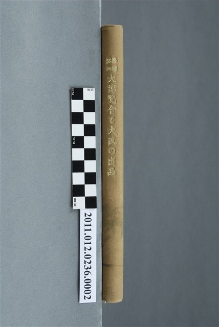 本物件為《臺湾満州大博覧会と大阪の出品》書本,由大阪出品聯合會於昭和11年(1936)8月15日發行。封面寫著「臺湾満州大博覧会と大阪の出品」,並有一高塔圖樣。該書針對臺灣及滿州博覽會的各項準備與設置,以及兩會對大阪館的宣傳進行紀錄與介紹。