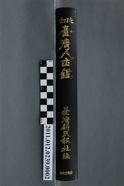 此為一紙質書籍,長26、寬20、厚3(cm),是1937年(昭和12年)臺灣新民報日刊發行5週年之紀念出版物,後由東京湘南堂書店於1986年復刻出版,此物件為精裝本,封面為黑色,書背位置以燙金字體標示書名及出版單位。 《臺灣人士鑑》的三次出版,分別是為紀念《臺灣新民報》日刊發行1週年、5週年、10週年紀念,此件的出版也為記錄臺灣的重要人物以達成「回顧既往人士並介紹新人物」的目標,此物件記載當時臺灣各地重要、知名人士相關資訊,如家庭成員、住所、相關經歷、人物簡介、嗜好,為紀錄日治時期人物的重要書籍。 此件的出版者臺灣新民報社,為日治時期臺灣人創辦的日報中影響最廣者,在前身《臺灣民報》時期,便自詡為「臺灣人唯一的言論機關」,於當時的政治運動脈絡裡有重要地位。在1930年,《臺灣民報》更名為《臺灣新民報》,並於1932年改為日刊發售。1941年,在日本帝國發動南向政策的時局下,《臺灣新民報》改名為《興南新聞》,同時原先批判政府的報紙風格逐漸消逝。之後,《興南新聞》與其他5份報刊在1944年被臺灣總督府整併為《臺灣新報》。