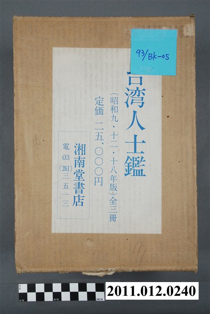 2011.012.0240.0001 興南新聞社出版《臺灣人士鑑》書殼