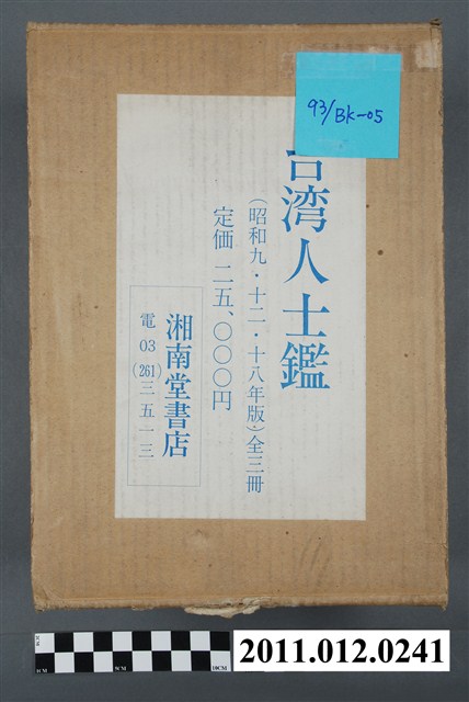 2011.012.0241.0001 臺灣新民報社調查部出版《臺灣人士鑑》書殼