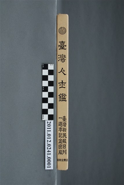 此為一紙質書殼,長28、寬22、厚2.1(cm)為《臺灣人士鑑》復刻版(東京:湘南堂,1986)之附件。此物件以釘書針裝訂成形,書背位置以黑色字體標示書名及出版單位。 《臺灣人士鑑》的三次出版,分別是為紀念《臺灣新民報》日刊發行1週年、5週年、10週年紀念,此件的出版也為記錄臺灣的重要人物以達成「回顧既往人士並介紹新人物」的目標,此物件記載當時臺灣各地重要、知名人士相關資訊,如家庭成員、住所、相關經歷、人物簡介、嗜好,為紀錄日治時期人物的重要書籍。 此件的出版者臺灣新民報社,為日治時期臺灣人創辦的日報中影響最廣者,在前身《臺灣民報》時期,便自詡為「臺灣人唯一的言論機關」,於當時的政治運動脈絡裡有重要地位。在1930年,《臺灣民報》更名為《臺灣新民報》,並於1932年改為日刊發售。1941年,在日本帝國發動南向政策的時局下,《臺灣新民報》改名為《興南新聞》,同時原先批判政府的報紙風格逐漸消逝。之後,《興南新聞》與其他5份報刊在1944年被臺灣總督府整併為《臺灣新報》。
