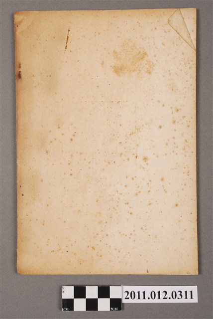 1.本物件為「臺灣總督府外事部編《殖產局調査團報告書》其之一五(土地制度)」,為海南島土地制度的調查報告書,封面中央為書名「殖產局調査團報告書其ノ一五(土地制度)」,左下角文字為「臺灣總督府外事部」,右上角文字為「海南島農林業開發參考資料第一五號」,右下角文字為「以印刷代謄寫」。內容主要為海南島地區的土地制度、分配概況與作物的調查。