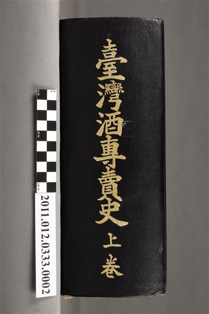 1.本物件為臺灣總督府專賣局發行《臺灣酒專賣史》上卷,為書籍,封面與封底皆無圖案與字樣,皆為深綠色底,鄰近書脊側與另一側之上下2角皆為黑色,書脊底為黑色,並有「臺灣酒專賣史上卷」淡色字樣,書籍內容為討論專賣制度施行前の酒、酒專賣制度の起源及目的、創業設施、酒類の製造,及相關紀錄照片。