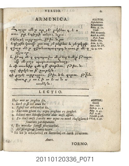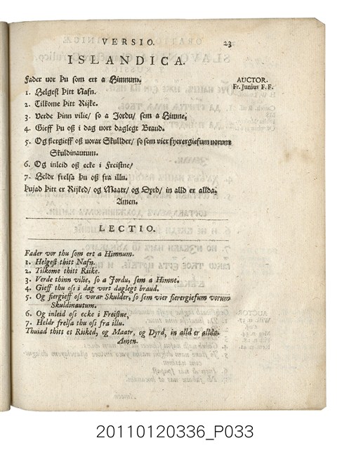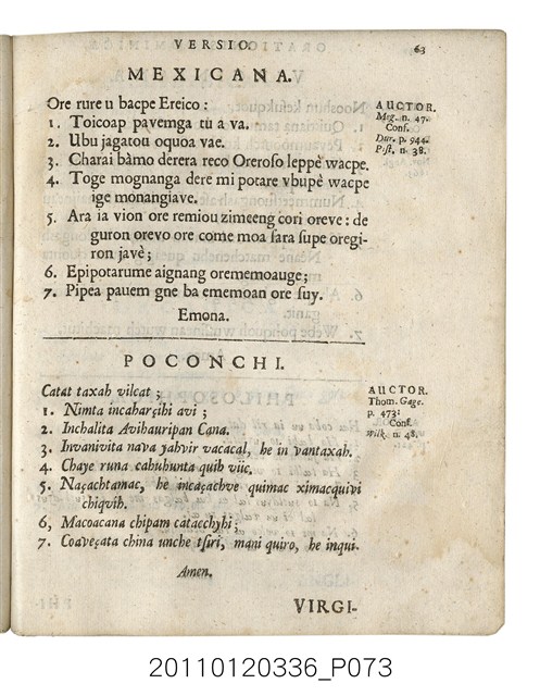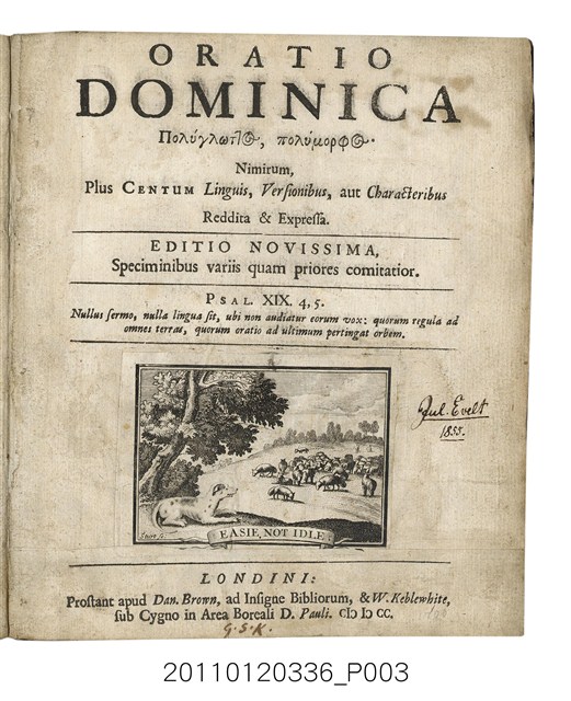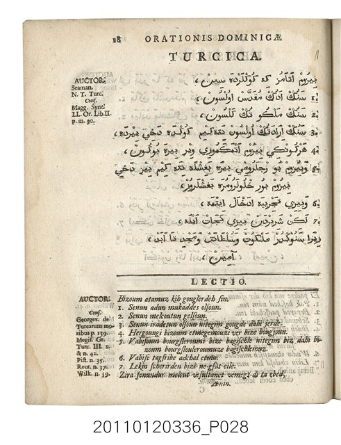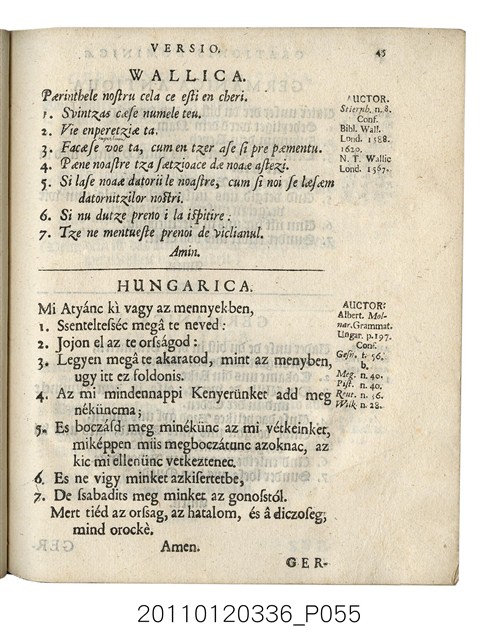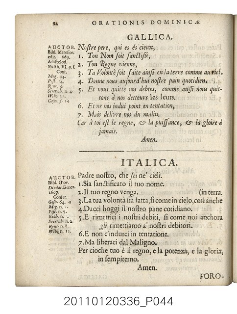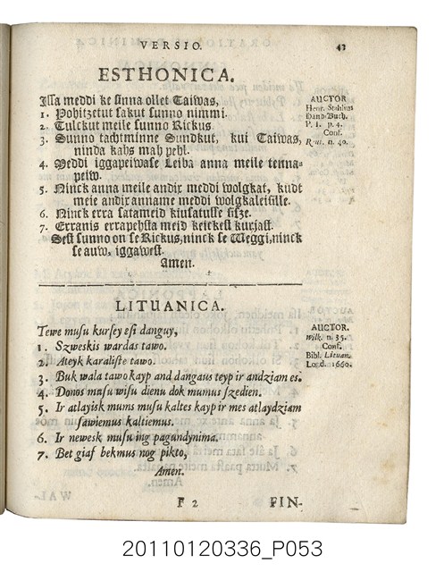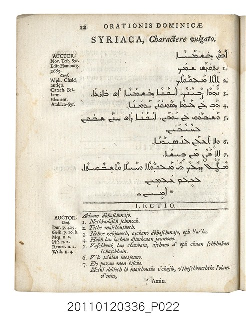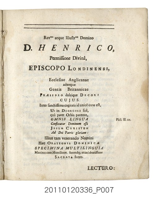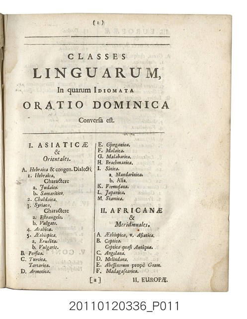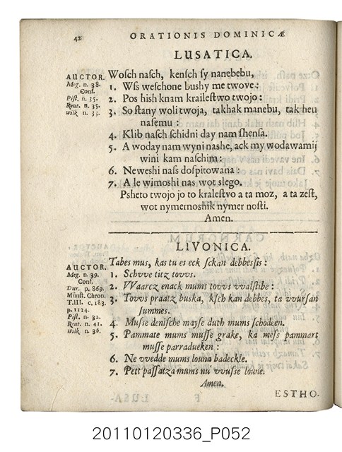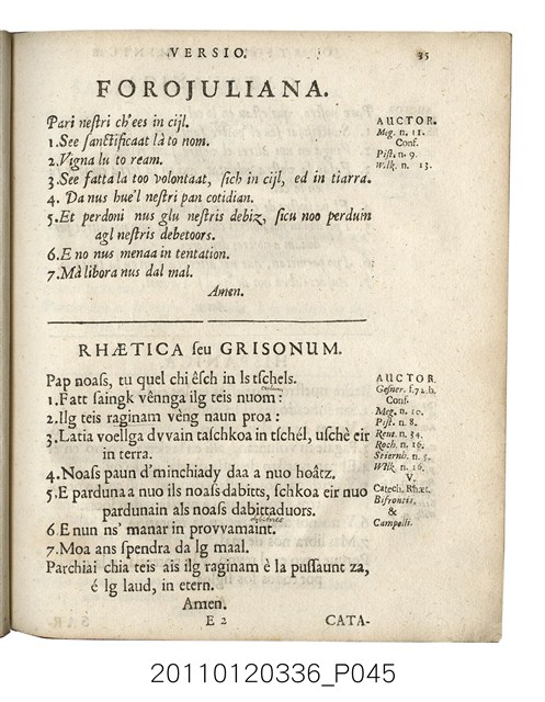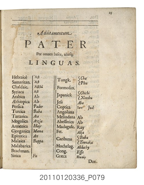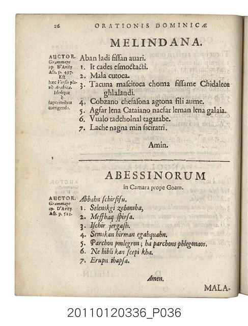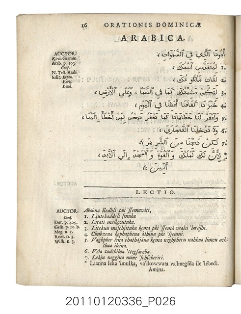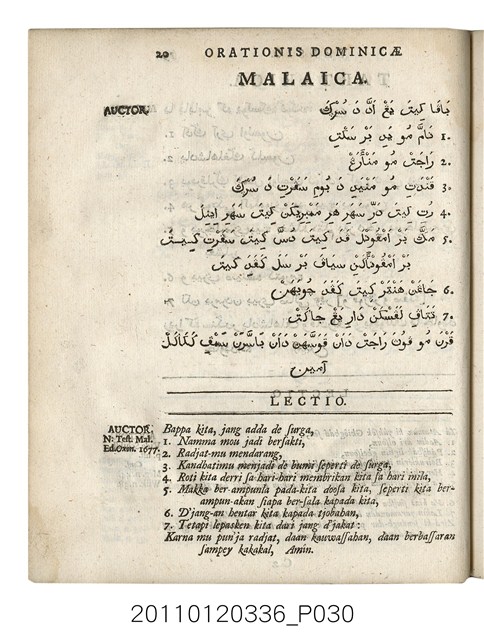 本書收入了各國語言的主祈禱文,主要應為傳教士所使用。書內收錄有福爾摩沙新港社原住民主祈禱文。