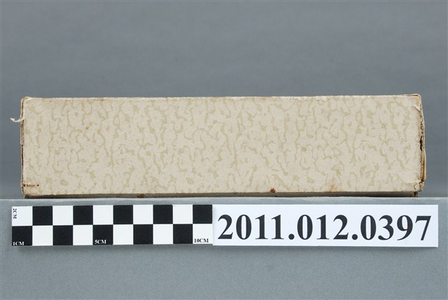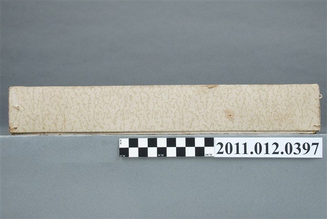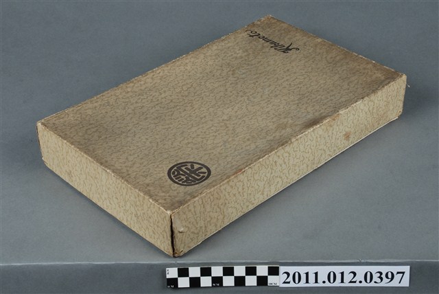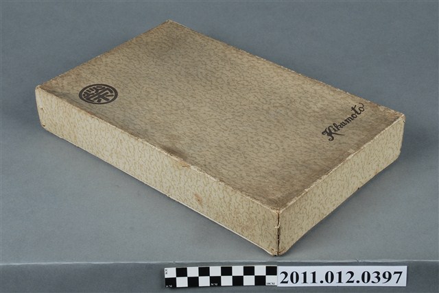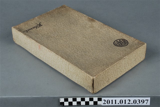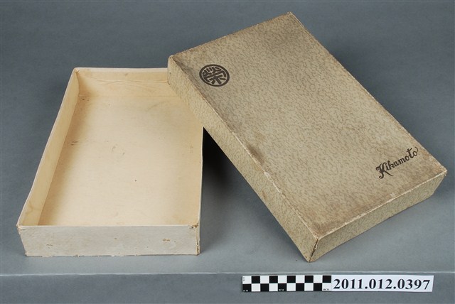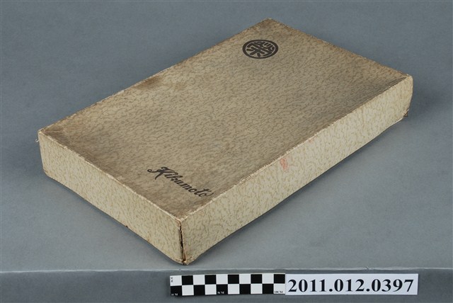 本物件為菊元百貨紙盒,紙盒外觀略有花紋,左上角有一「榮」字商標,右下角有「Kikumoto」字樣,即為菊元的日文,盒子內並無內容物,雖略有破損但保存尚稱完整。