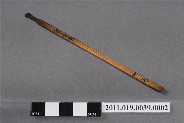 本件籤以竹片製成,形狀細長,頂端刻成葫蘆狀,使搗籤時容易抽取,亦表示「福氣」。中間有「第壹號」、末端有「一號」字樣。依據籤的編號,可以找到籤詩。抽籤是占卜的其中一種方式,從商朝人就已開始運用龜甲、牛骨進行占卜;最晚於宋代就已經出現的籤詩是當時文人雅士參與抽籤活動時,所編寫的一些附會詩詞。