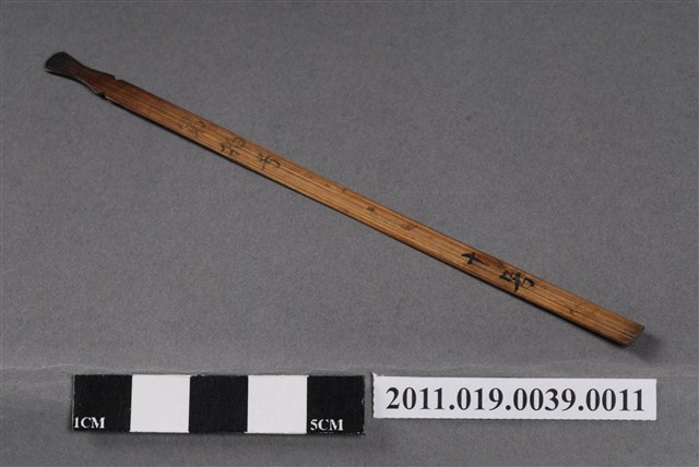 本件籤以竹片製成,形狀細長,頂端刻成葫蘆狀,使搗籤時容易抽取,亦表示「福氣」。中間有「第拾號」、末端有「十號」字樣。依據籤的編號,可以找到籤詩。抽籤是占卜的其中一種方式,從商朝人就已開始運用龜甲、牛骨進行占卜;最晚於宋代就已經出現的籤詩是當時文人雅士參與抽籤活動時,所編寫的一些附會詩詞。
