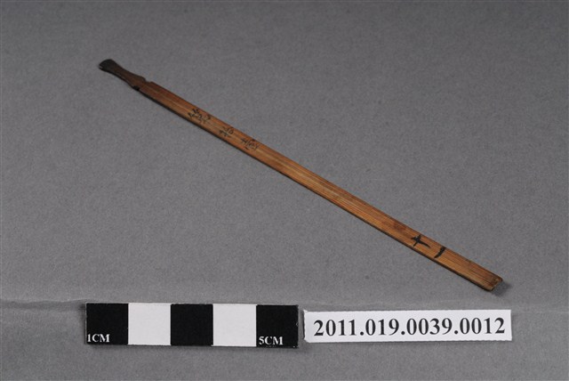 本件籤以竹片製成,形狀細長,頂端刻成葫蘆狀,使搗籤時容易抽取,亦表示「福氣」。中間有「第拾壹」、末端有「十一」字樣。依據籤的編號,可以找到籤詩。抽籤是占卜的其中一種方式,從商朝人就已開始運用龜甲、牛骨進行占卜;最晚於宋代就已經出現的籤詩是當時文人雅士參與抽籤活動時,所編寫的一些附會詩詞。