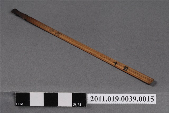 本件籤以竹片製成,形狀細長,頂端刻成葫蘆狀,使搗籤時容易抽取,亦表示「福氣」。中間有「第拾肆」、末端有「十四」字樣。依據籤的編號,可以找到籤詩。抽籤是占卜的其中一種方式,從商朝人就已開始運用龜甲、牛骨進行占卜;最晚於宋代就已經出現的籤詩是當時文人雅士參與抽籤活動時,所編寫的一些附會詩詞。
