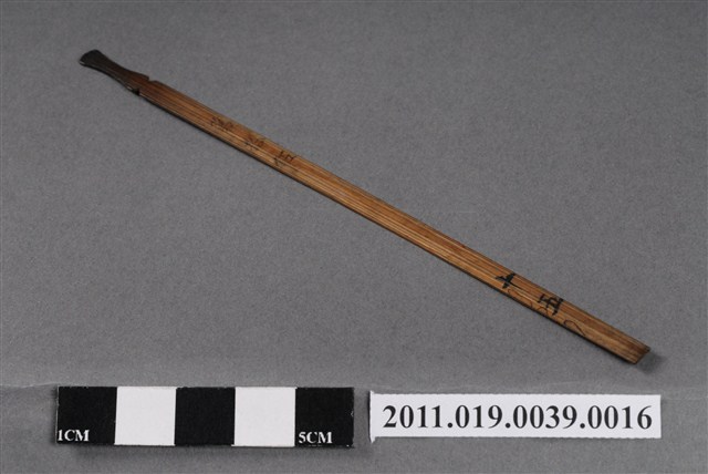 本件籤以竹片製成,形狀細長,頂端刻成葫蘆狀,使搗籤時容易抽取,亦表示「福氣」。中間有「第拾伍」、末端有「十五」字樣。依據籤的編號,可以找到籤詩。抽籤是占卜的其中一種方式,從商朝人就已開始運用龜甲、牛骨進行占卜;最晚於宋代就已經出現的籤詩是當時文人雅士參與抽籤活動時,所編寫的一些附會詩詞。