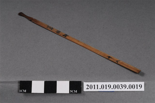 本件籤以竹片製成,形狀細長,頂端刻成葫蘆狀,使搗籤時容易抽取,亦表示「福氣」。中間有「第拾捌」、末端有「十八」字樣。依據籤的編號,可以找到籤詩。抽籤是占卜的其中一種方式,從商朝人就已開始運用龜甲、牛骨進行占卜;最晚於宋代就已經出現的籤詩是當時文人雅士參與抽籤活動時,所編寫的一些附會詩詞。