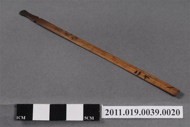 本件籤以竹片製成,形狀細長,頂端刻成葫蘆狀,使搗籤時容易抽取,亦表示「福氣」。中間有「第弍拾」、末端有「二十」字樣。依據籤的編號,可以找到籤詩。抽籤是占卜的其中一種方式,從商朝人就已開始運用龜甲、牛骨進行占卜;最晚於宋代就已經出現的籤詩是當時文人雅士參與抽籤活動時,所編寫的一些附會詩詞。