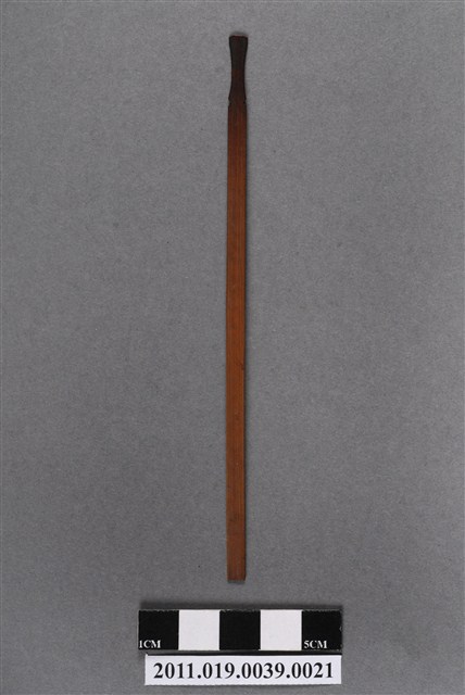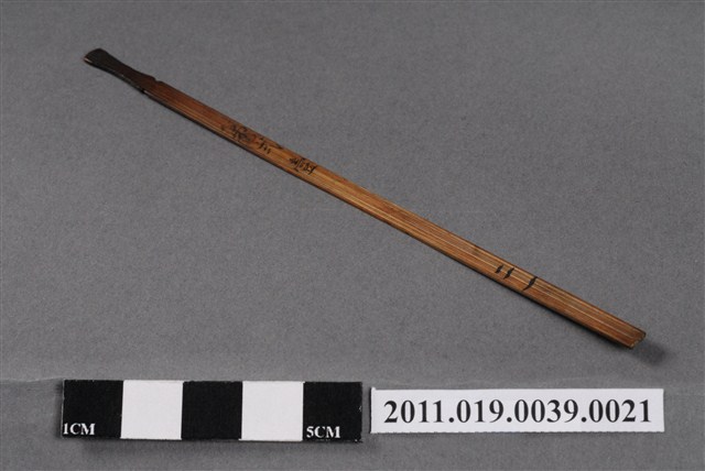 本件籤以竹片製成,形狀細長,頂端刻成葫蘆狀,使搗籤時容易抽取,亦表示「福氣」。中間有「第弍壹」、末端有「二一」字樣。依據籤的編號,可以找到籤詩。抽籤是占卜的其中一種方式,從商朝人就已開始運用龜甲、牛骨進行占卜;最晚於宋代就已經出現的籤詩是當時文人雅士參與抽籤活動時,所編寫的一些附會詩詞。