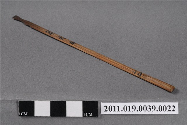 本件籤以竹片製成,形狀細長,頂端刻成葫蘆狀,使搗籤時容易抽取,亦表示「福氣」。中間有「第弍弍」、末端有「二二」字樣。依據籤的編號,可以找到籤詩。抽籤是占卜的其中一種方式,從商朝人就已開始運用龜甲、牛骨進行占卜;最晚於宋代就已經出現的籤詩是當時文人雅士參與抽籤活動時,所編寫的一些附會詩詞。